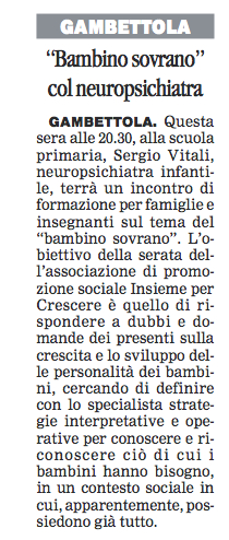 Serata formativa per genitori e insegnanti della scuola primaria col neuropsichiatra infantile. Corriere di Romagna di martedì 23 novembre 2015