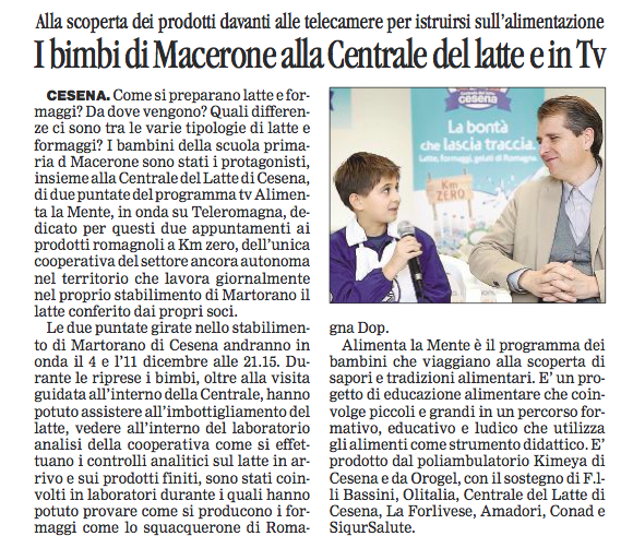 16 Dic corriere 3 dicembre 2015 Posted at 10:31h in Alimenta la mente, Press e Comunicati by KimeyaContenuti Due puntate di Alimenta la Mente alla scoperta di latte, formaggi e yogurt con la Centrale del Latte di Cesena. Corriere di Romagna di giovedì 3 dicembre 2015 Tags: alimenta la mente, alimentazione, bambini, centrale latte cesena, formazione, teleromagna Print page